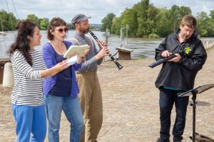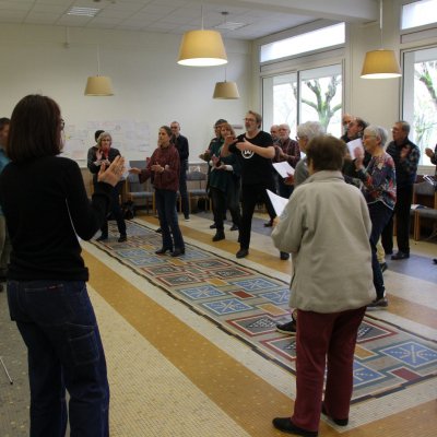 Le travail effectué ces derniers mois avec les différents intervenants sur les postures ou les déplacements se ressent sur le choeur qui anime le territoire et les milieux ruraux en présentant leur programme Chabrier autour de la musique contemporaine dans des concerts comme à Monnaie ou prochainement à Neuvy-le-Roi pour la fête de la musique qui marquera le dernier concert de l'ensemble avant la pause estivale. Le choeur a également participé à une marche chantée le 26 mai. Les randochanteur·euse·s, guidés par les voix de Marie Perrin et Ophélie Chapdelaine, la clarinettes d'Antoine Moulin et le melodica de Jean-Baptiste Apéré se sont déplacés en chanson sur une matinée, accompagné en fin de journée d'un concert du choeur.
