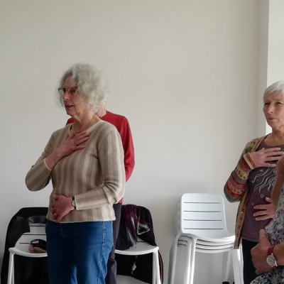 Nouveau week-end d'immersion pour Chabrier Atelier XXI, placé sous le signe du mouvement. Cette fois-ci, c'est Karine Bonneau, art thérapeute par le mouvement, danse thérapeute, mais aussi artiste chorégraphique aimant sensibiliser quiconque au mouvement et à la danse, qui a proposé au choeur des temps d'atelier sur le langage du corps et la présence à la scène.