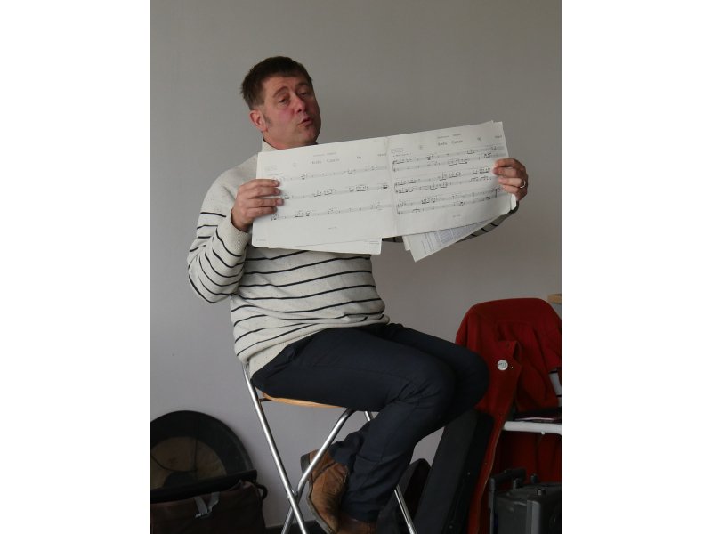 Rencontre entre le choeur Chabrier Atelier XXI et Jean-Baptiste Apéré en vue d'une matinée de présentation de son ensemble et de la collaboration future sur le projet Babel 21 qui repose sur les « Tierkreis » de Stockhausen.