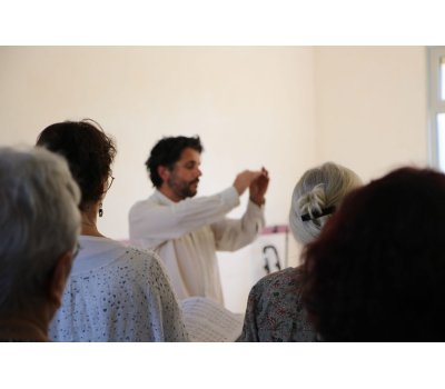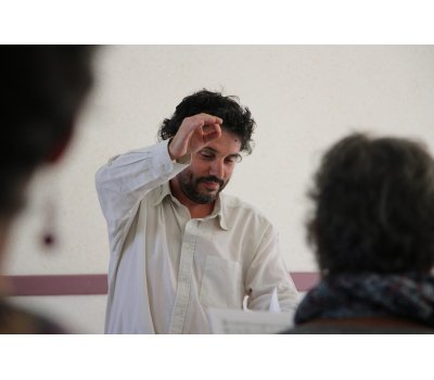 Après réception des oeuvres, c'est Raphaël Terreau qui entre en scène. Avec seulement trois mois pour préparer les concerts, le défi de présenter un travail abouti est de taille ! D'autant qu'à l'apprentissage des cinq opus s'ajoute celui de huit pièces anciennes, composées il y a cinq siècles par des contemporains de Ronsard. « Habituellement, nous avons plus de temps : là, il faut faire vite ! » Après deux week-ends au printemps et un stage d'été d'une semaine, pour les choristes comme pour les compositeurs, cette session de travail conjoint est un temps unique et rare. « C'est une vraie chance pour nous de pouvoir entendre la parole de celui qui a créé la pièce que l'on chante », témoigne Sylvie, l'une des mezzos, entre deux chants. Ce temps de répétition avec les compositeurs, Raphaël Terreau y tient particulièrement. « Cela donne une valeur ajoutée à ma démarche, en challengeant les choristes. C'est aussi un moment de partage, d'écoute et parfois de remise en question de mes indications… C'est excitant ! »