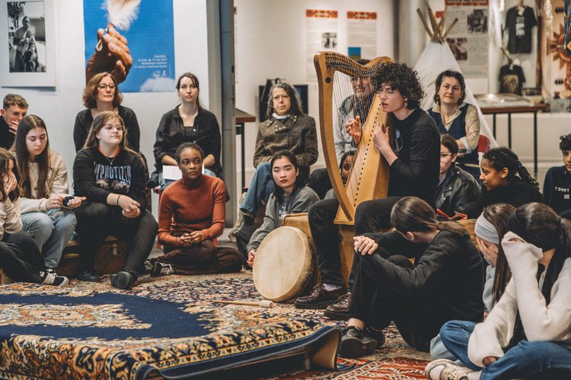 En plus de ces volets imaginés avec les secteurs sociaux-médicaux, un troisième volet éducatif s'est construit. Pour Nicolas Robin, conseiller pédagogique départemental en éducation musicale, les enjeux étaient nombreux derrière ce modeste projet : « Nous constatons combien le tactile supplante le sensible, combien le virtuel détruit le réel… Grâce à des ateliers de sensibilisation à l'environnement sonore, à la collecte de textures, à la découverte d'un instrument qu'est la harpe, la démarche était à la fois artistique, philosophique et citoyenne. » Fanny complète : « Nous avons pu travailler la présence au son du vivant et faire un grand pas dans l'approche de la musique. La réussite a été de passer de « je n'aime pas » ou « je ne connais pas » à une présence musicale plus intuitive et spontanée, dans un rapport sensible. C'est devenu un jeu, tout de suite mélodieux grâce à la harpe, auquel les enfants se sont prêtés avec joie ! »