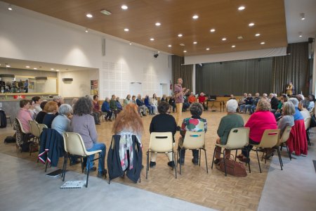Ce sont près de 50 choristes que Mathieu Bolcato a autour de lui ce jour-là. Il les connaît puisque c'est le second atelier dont bénéficient les choeurs des cheffes Fabienne Goupille et Isabelle Guérin. Elles ont choisi de mettre à profit le dispositif pour développer un projet de concert qu'elles portent à deux et qui naîtra en mars 2024. « C'est chouette de voir évoluer le choeur, de le voir patiner aussi, puis finalement de voir les choses aboutir ! Ca déroute mais on est là pour ça, constate Fabienne. Ces deux ateliers permettent d'asseoir le projet, ils nous apportent une palette de références, d'images et un vocabulaire commun. »