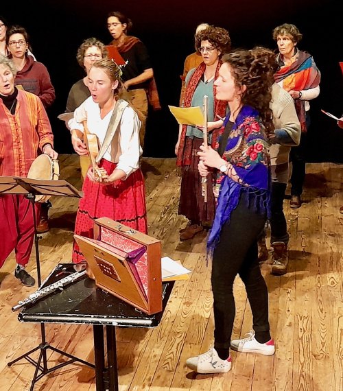 pratique musicale au travers d'exercices de respiration, percussions corporelles, jeux théâtraux, chants accompagnés de bourdons, chants dialogués, pratique de l'ornementation et chants de cercle.