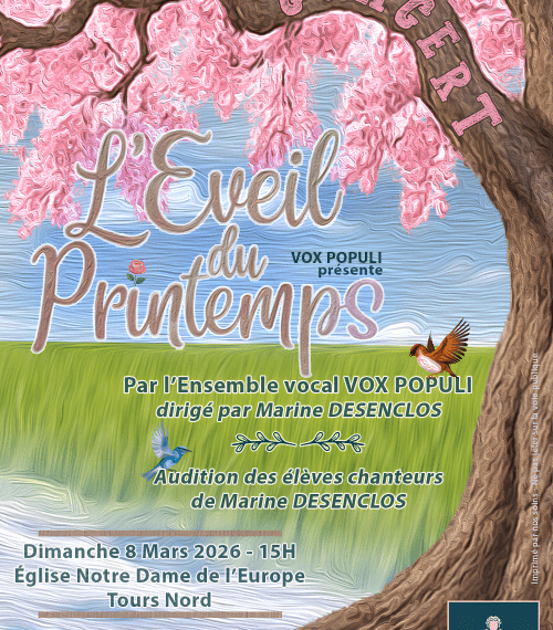 Dirigé par Marine Desenclos, l'ensemble vocal Vox Populi vous propose un après-midi lyrique autour d'airs de La Périchole de J. Offenbach et de L'Élixir d'Amour de G. Donizetti, extraits de sa nouvelle production qui sera jouée en novembre 2026 à Oésia (Notre-Dame-d'Oé) et à la salle des fêtes de Saint-Pierre-des-Corps.