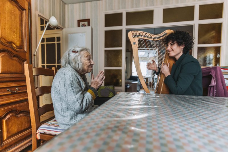 Dans le cadre d'un partenariat avec le CCAS de Châteauroux, Fanny Perrier-Rochas a porté la musique au plus près des personnes âgées. Elle a franchi le seuil des chambres, des salons et des EHPAD pour offrir des instants de chant – parfois à domicile, parfois en collectif avec résidents et proches. Ces moments, simples et intimes, ont résonné comme des bulles de consolation. L'article de presse qui a relaté ces rencontres parle de « musique là où on ne l'attend pas ». Un geste rare qui a montré combien l'art peut rester un compagnon essentiel jusque dans les âges fragiles, ravivant mémoire, émotions et lien social.